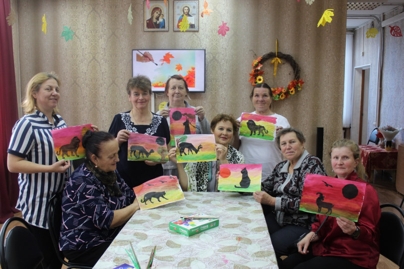 Творческая активность дарит пожилым людям самое важное – жизненные силы и желание жить. Сегодня отдыхающие отделения дневного пребывания выполнили рисунок в технике градиент. Это занятие позволило отвлечься участникам от житейских проблем и впустить в свою жизнь краски. Занятие рисованием  дарит свободу самовыражения, помогает бороться со стрессом, избавляет от переживаний. Было не просто, но все справились. У каждого получился яркий, неповторимый шедевр и подарил хорошее настроение.