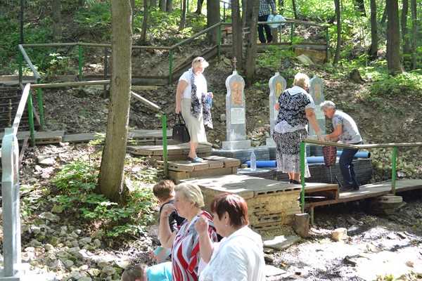 Согласно одной легенде, эти родники открыл Серафим Саровский по пути из Саровской пустыни на Зеленоградскую ярмарку, которая проходила под стенами разрушенного ныне мужского монастыря. После долгого пути, изнурённый жаждой, Серафим Саровский присел на краю лесного овражка и после молитвы увидел святых, стоявших с живительной влагой в пригоршнях. Спустившись, Серафим Саровский обнаружил забившие повсюду в овраге родники. Легенда берёт начало в 18 столетии, когда молодой инок Серафим мог посещать Зеленогорскую ярмарку.